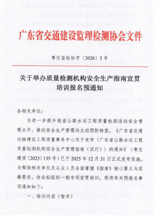 协会秘书处 发表时间:2026-01-16 15:14:00 来源:广东省交通建设监理检测协会
