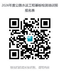 各有关单位: 根据交通运输部《公路水运工程质量检测管理办法》(交通运输部令2023年第9号)的规定和《交通运输部关于进一步加强和规范公路水运工程试验检测工作的若干意见》(交质监发〔2013〕114号)的要求,为提高我省公路水运工程试验检测人员基桩检测的理论水平和实操技能,进而提升全省公路水运工程试验检测机构基桩检测能力,广东省交通建设监理检测协会(以下简称“协会”)计划在广州市举办2026年度公路水运工程基桩检测培训班,现将具体事项通知如下: 一、培训内容 (一)低应变法检测基桩完整性; (二)声波透射法检测基桩完整性; (三)钻芯法检测基桩完整性; (四)静荷载试验法检测基桩承载力; (五)高应变法检测基桩完整性。 以上培训将根据预报名情况分期开班,具体时间、地点及费用信息请留意协会的正式开班通知。 二、培训对象 本次培训分为培训人员和考核人员,培训人员只参加培训不参加考核,考核人员既参加培训也参加考核。 考核人员:取得公路水运工程试验检测证书(公路证书需包含桥梁隧道专业、水运证书需包含地基基础或结构专业)的技术人员;取得广东省建设工程质量安全检测和鉴定协会颁发的地基基础专业培训合格证中包含桩身完整性检测(低应变、声波透射或钻芯法) 和基桩承载力检测(静荷载试验法)的技术人员。 培训人员:对证书不作要求。 三、培训方式和证书发放 (一)培训班拟邀请相关基桩检测专家/教授采取线上理论授课、线下实操演练的方式进行培训,参加考核人员理论考试和实操考核合格的学员颁发由协会盖章的培训合格证书,同时颁发继续教育学时证明,培训人员只颁发继续教育学时证明。 (二)检测人员参加培训取得合格证书将作为今后对基桩检测能力确认的依据之一。 四、其它有关事项 (一)预报名方式 微信扫描下方二维码,进入培训预报名表单,输入完整信息提交即预报名成功,请有意愿参加培训的人员于5月20日前完成预报名。 协会视预报名情况,在培训前另发培训的正式通知,完成预报名的学员无需重复提交报名。因此次培训名额有限,协会将优先考虑完成预报名并在规定时间内缴费的学员。